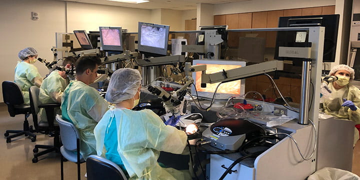 This program is intended for graduating senior residents interested in an otologic surgery update through a series of lectures and lab dissection sessions using temporal bone specimens. Faculty lectures will be complemented by closely mentored, hands-on lab sessions offering opportunities for dynamic interaction with faculty. Each participant will have access to a state-of-the-art 10-station lab equipped with a microscope with a flat panel monitor and the latest endoscopic and microdissection tools.
