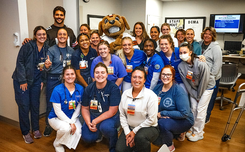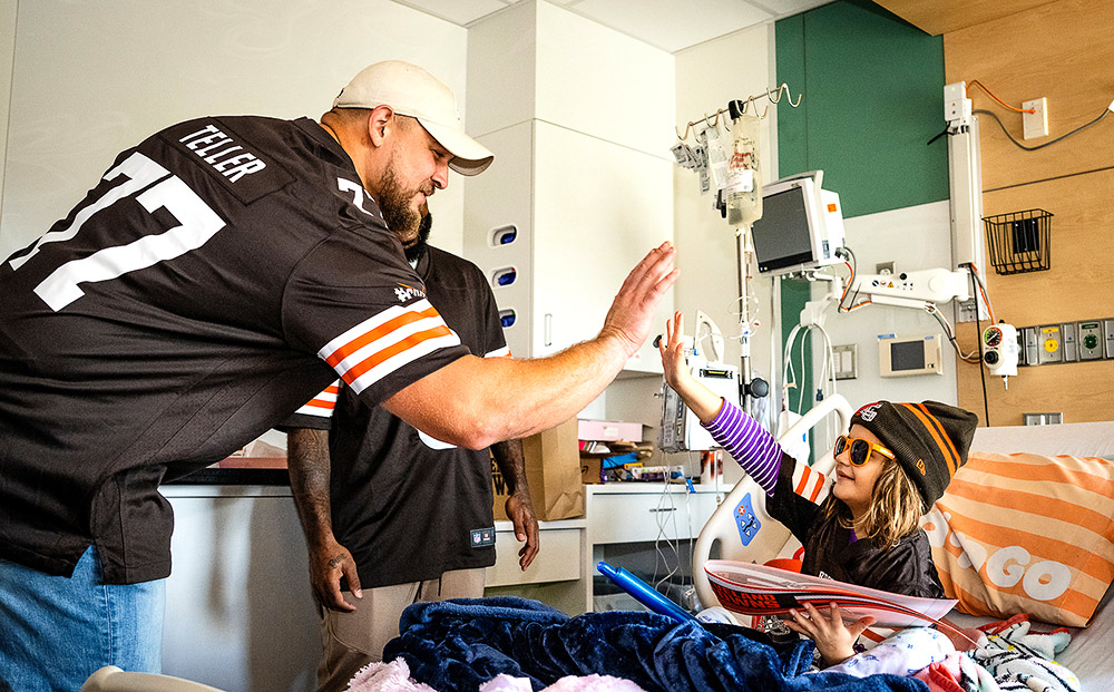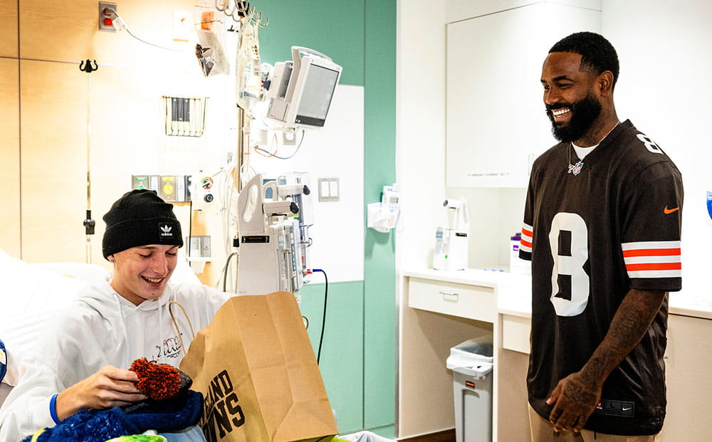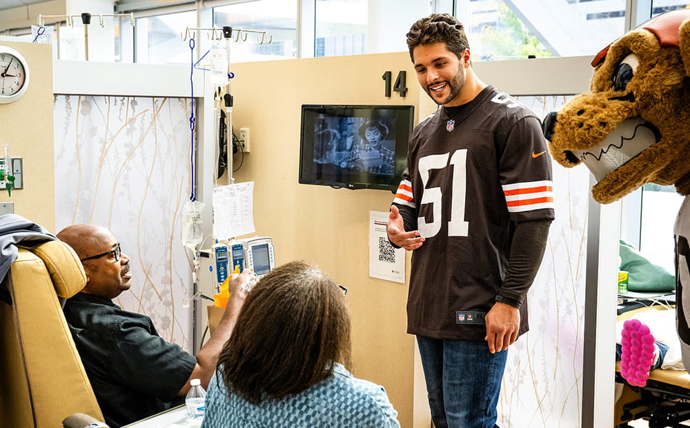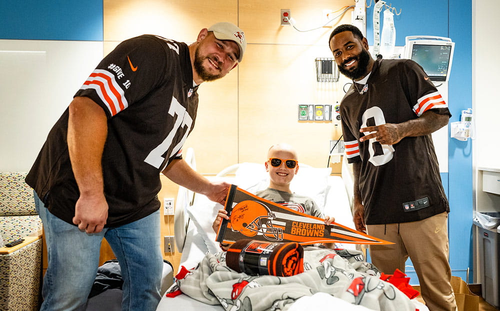 As part of Browns Give Back’s continued support of the NFL Crucial Catch campaign, the Browns visited University Hospitals Rainbow Babies & Children’s Hospital patients on September 26, 2023