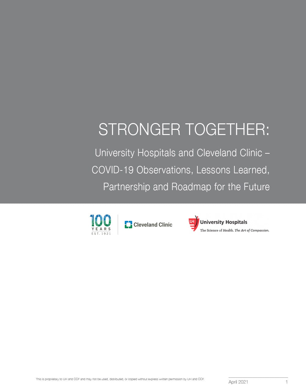 Traditionally competitors, University Hospitals and the Cleveland Clinic made the decision to collaborate on efforts to improve the well-being of the communities we serve. This collaboration grew even stronger during the pandemic. Through a white paper, UH and the Cleveland Clinic review our pandemic response, lessons learned, and our roadmap for the future to ensure a healthier community.