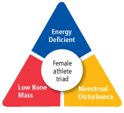 While the benefits of sports participation for girls clearly outweigh the risks, sports participation can put female athletes at risk for female athlete triad, a syndrome involving the three interrelated components of energy availability, menstrual function and bone health.