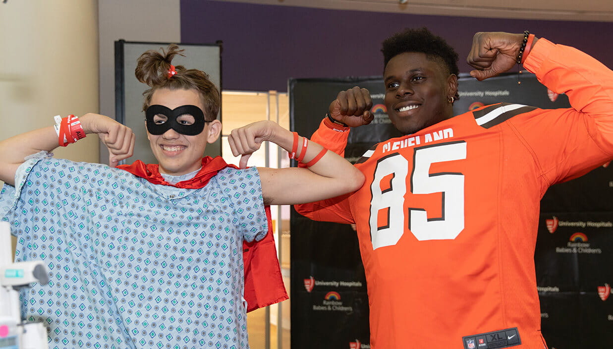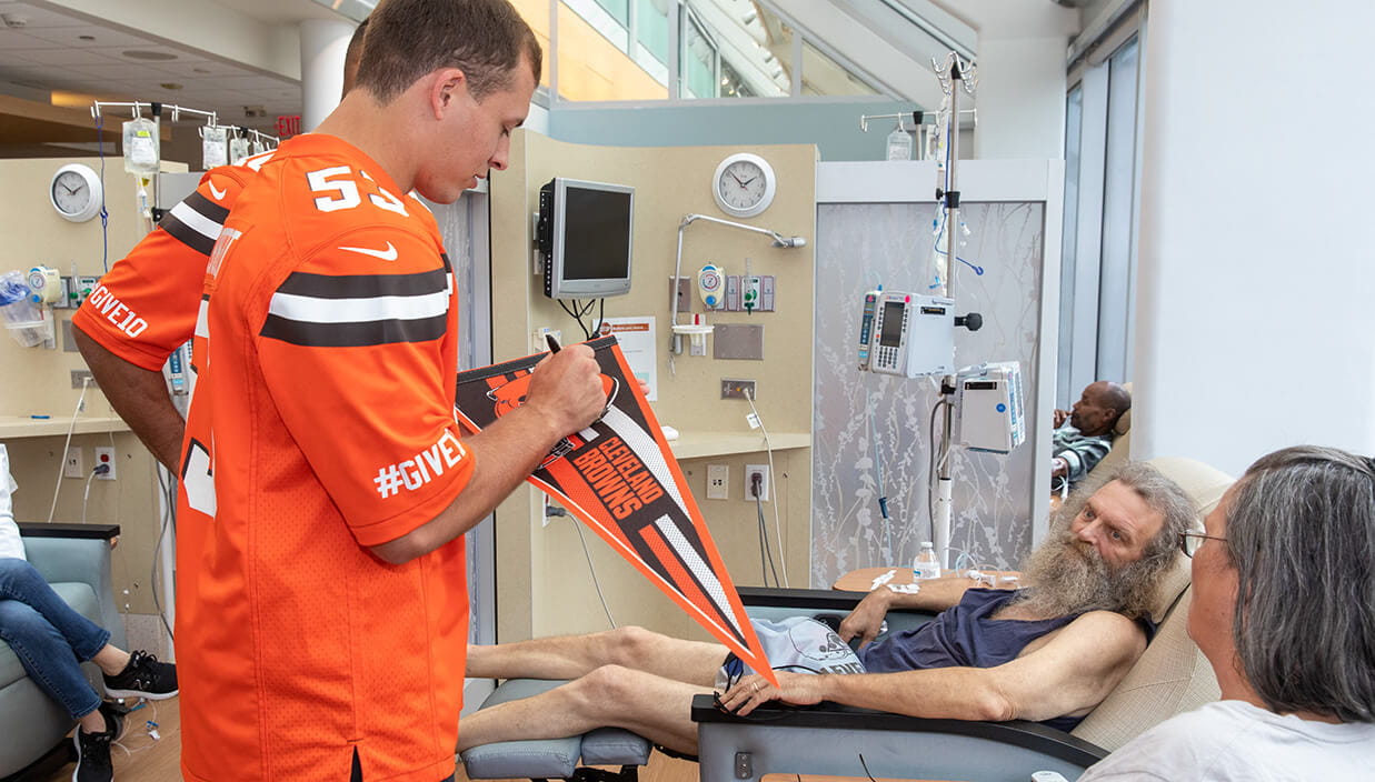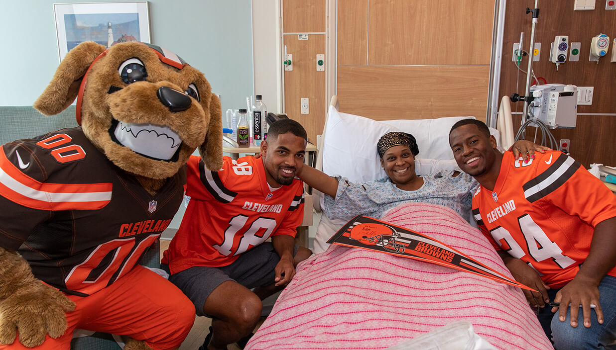 As part of Browns Give Back’s continued support of the NFL Crucial Catch campaign, the Browns visited University Hospitals Rainbow Babies & Children’s Hospital patients on September 26, 2023