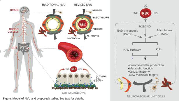 In particular, researchers are focused on how two cell types — red blood cells (RBC) and endothelium cells that line the microscopic vessels — are altered during aging and disease progression. Team members have targeted specific regulators that govern cellular function in hopes of developing compounds that will lead to effective therapeutics.