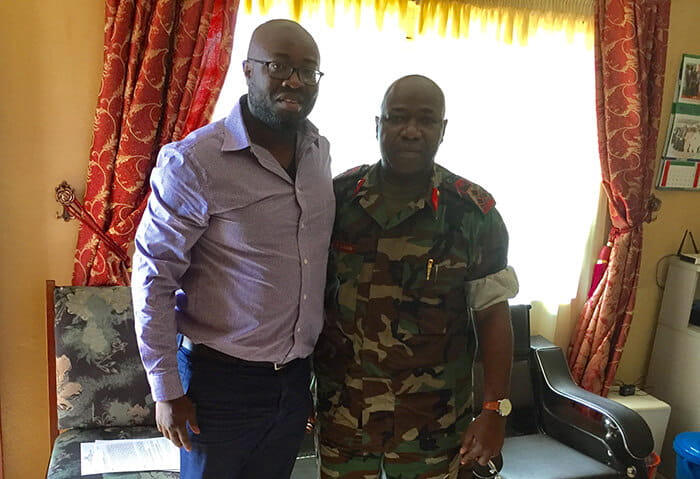 George Yendewa, MD with Major General Professor Foday Sahr, Surgeon General of Sierra Leone.For the past three years, Dr. Yendewa has received funding to further his work on the epidemiology of HIV and Hepatitis B in Sierra Leone. He is intent on understanding the extent of these infectious diseases in his home country, how they present, how patients find care, and how to improve outcomes in a country recovering from civil war and an insufficient health infrastructure.