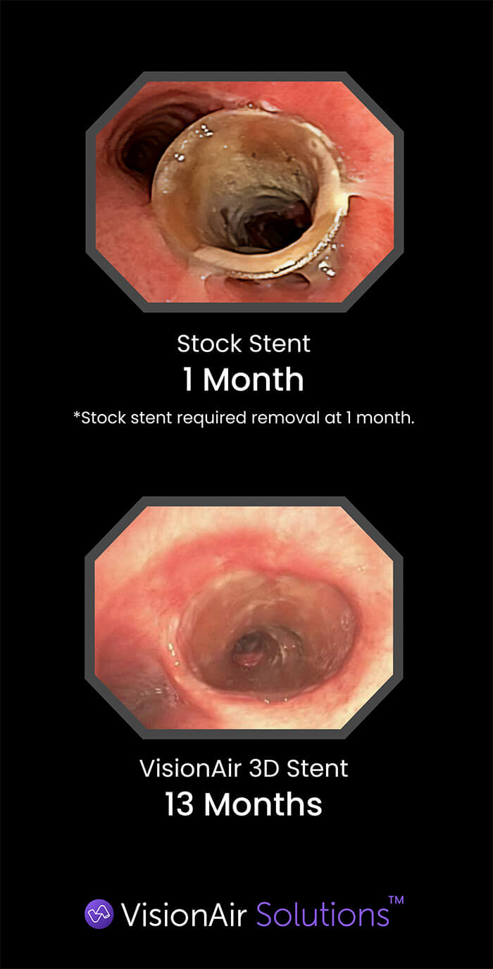 Airway stents are easy to place and remove through bronchoscopy. While immediate results are generally positive after stent placement, over time, patients frequently develop complications that can diminish the efficacy, including inflammation, mucus formation and mechanical rubbing, which causes tissue formation and may occlude the lumen of the stent.