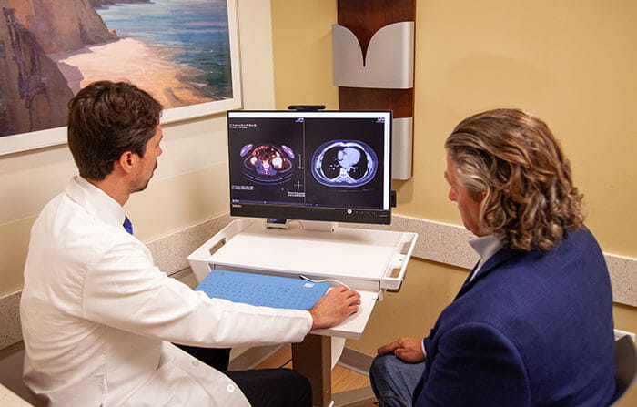Dr. Pedro Barata and patient viewing PET scan at UH Seidman Cancer Center.“Any cancer has the ability to leave the kidney and go to other places in the body,” he adds. “Having a scan and a tracer that improves detection of this cancer it’s an advantage. We can adapt our treatment to those patients in a much more accurate manner. I’m pleased to say we have this investigational new option available here at University Hospitals Seidman Cancer Center.”