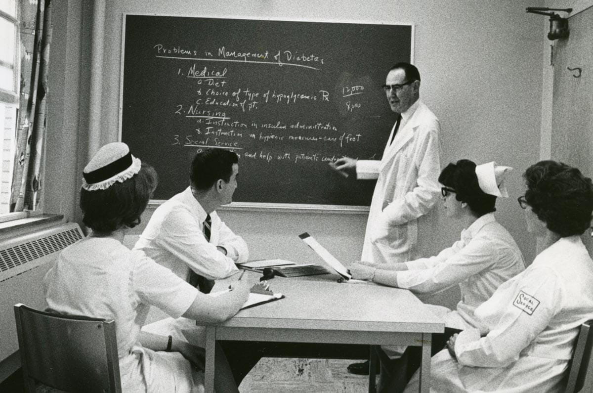 1967: Babies & Childrens Hospital began to hold classes for parents of patients with diabetes: teaching how to administer insulin injections, diet management, and best practices for providing their child practical and emotional support.