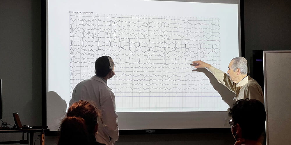 Professor Lüders teaching during the bi-weekly morning EEG/Epilepsy course session (pre-pandemic).Course Description
