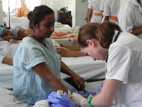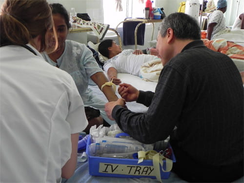 Rachel Pope, MD (right), inserts an IV line in a patient at Georgetown Public Hospital in Georgetown, Guyana, in January 2012 as part of the WONDOOR program. Dr. Pope is an Ob/Gyn resident at UH MacDonald Women’s Hospitals.