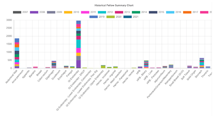 - 1 Fellow(s) performed 530 cases with 635 procedures during 2020-2021