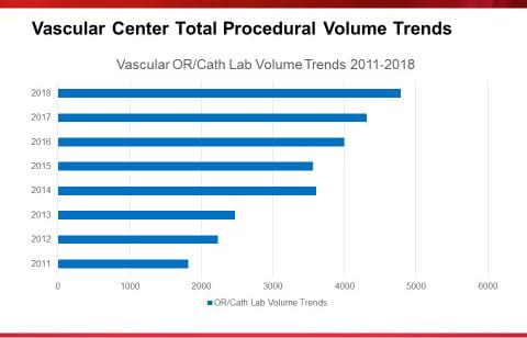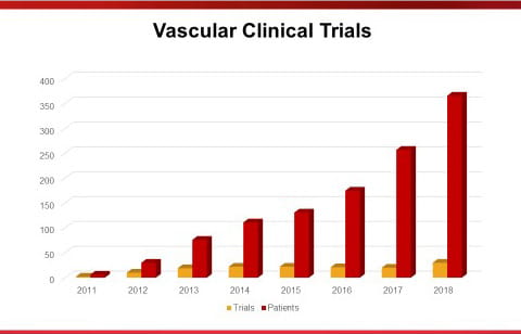 The Division of Vascular Surgery conducts approximately 700 outpatient visits, 170 of which are new patients, annually. We perform approximately 240 major open operations, 470 minor open operations, 100 diagnostic and 150 therapeutic endovascular procedures. Both open and endovascular training are instructed by vascular surgeons.