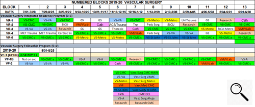 All residents are required to complete an academic project that will culminate in publication and/or presentation at a major conference. All residents are required to sit for the Vascular Surgery In-Training Exam (VSITE) annually. Our required curriculum includes: