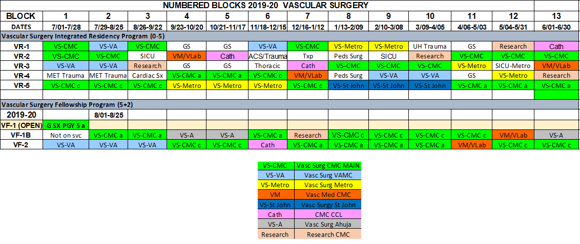Trainees work with 14 vascular surgery faculty members across these sites. The expectations for each year of training are as follows:
