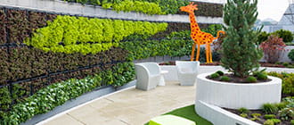 A 7,500-square-foot rooftop healing garden where patients and families can take a break from the clinical environment without leaving the facility.