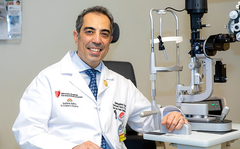 A pediatric ophthalmologist treats a patient at UH Rainbow Ahuja Center for Women & Children
