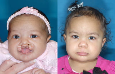 Patient started with Nasal Alveolar Molding (NAM), then proceeded with first surgery: Bilateral Cleft Lip Adhesion followed by second Cleft Lip and Cleft Rhinoplasty