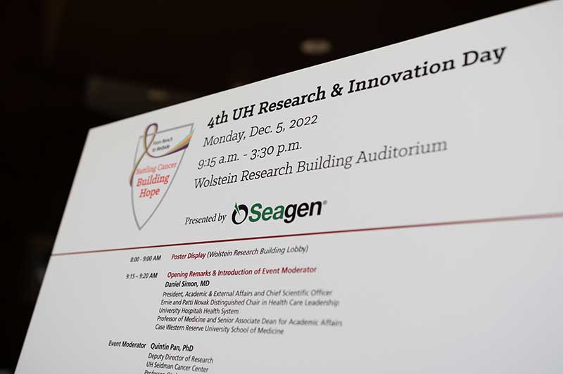 The 4th UH Research & Innovation Day was held on December 5, 2022. This year's event celebrated the scholarly and innovation efforts around cancer discoveries. Distinguished keynote speakers, University Hospitals, Case Western Reserve University physicians and scientists, and scientific poster winners were invited to present their cutting-edge research findings.