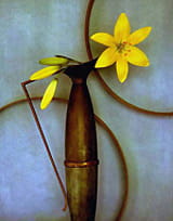 Masatomo Kuriya uses the ancient art of Japanese flower arranging in his still life photographs. His work is striking in its color and balance. He uses Cibachrome as his photographic medium along with his beautiful hand-painted backdrops. This blending of technology and tradition make Kuriya’s work unlike any other floral still life. Each image is saturated with color and his attention to detail and minimalism is striking and expressive; calming and sensitive.