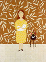 Lucy Fradkin is a self-taught artist whose passion for art and art-making has informed and influenced her for as long as she can remember. Raised in New York City, she remembers numerous visits to the Brooklyn Museum with her mother. She was drawn to the graphic and design styles of the 1940’s and 50’s, from which she drew her early aesthetic sensibilities, influences that remain present in her work to date. In 1991, she spent several months traveling in Mexico and Guatemala studying indigenous art and hand-painted signage, which inspired new directions and ideas. She has also traveled extensively throughout Italy and Greece and has a strong affinity for the ancient frescoes and mosaics. For the past 8 years she has concentrated on a series of figurative works painted in oil or gouache on paper. She sometimes incorporates collaged decorative elements from a variety of sources including old catalogs, field guides and vintage books into her work. Her use of color and patterns tells stories of daily life where the viewer is drawn into an intimate world. Her personal history is evident in the quiet presentation of issues of gender and race.