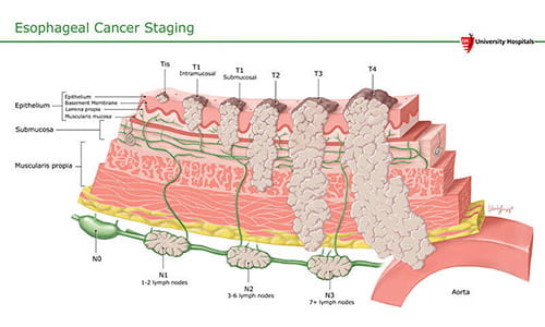 Seeing a specialist as soon as possible allows an earlier esophageal cancer diagnosis so treatment can begin at an earlier phase. Since symptoms can be easily confused with other conditions, often times, esophageal cancer is found in an advanced stage when it can be treated but rarely cured.