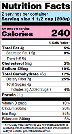 - Choose foods with less than 6% Daily Value for Added Sugars