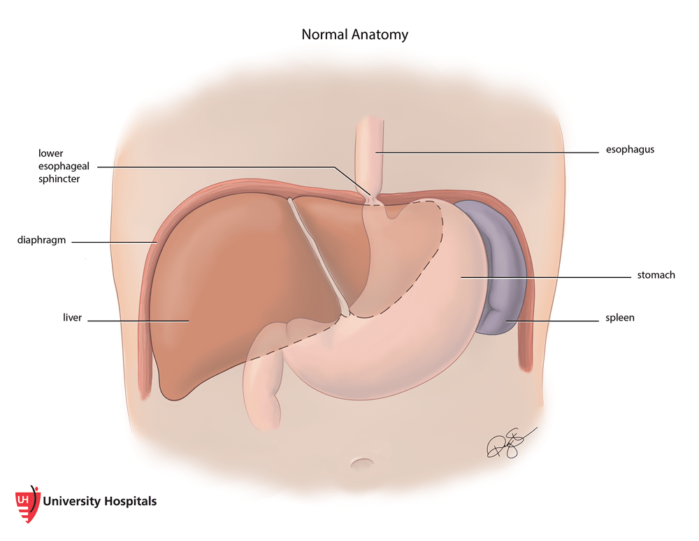 Find a DoctorThe digestive process begins when the food we eat and swallow enters the esophagus. As the food moves down the esophagus, muscles at the top open and close automatically to keep food from going down the nearby windpipe and into the lungs. These muscles are called the upper esophageal sphincter or UES. Muscles at the bottom of the esophagus – the lower esophageal sphincter or LES – open automatically to allow food to enter the stomach and then close to keep it there. Once the food is in the stomach, enzymes and acids are released to break it down so the body can use the nutrients.