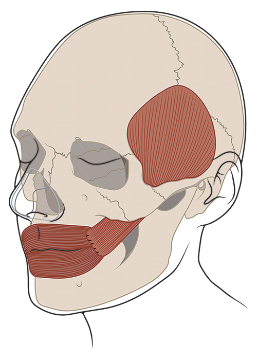 The temporalis muscle lays over the side of the skull and attaches to the jaw to help close the mouth and clench your teeth together. We can provide movement to the corner of the mouth by detaching this muscle from the jaw and re-attaching it to the lip. The beauty of this procedure is it can be hidden either through an incision in a crease on the cheek or in the mouth. Once it has healed, the lips will be in better position and the corner of the mouth will move up with clenching (similar to a sile). We usually overcorrect the smile at first because over time this muscle relaxes to provide great symmetry. As one can imagine, clenching your teeth is how you would control the muscle and that means the patient needs retraining and rehabilitation to get the best outcome from surgery.
