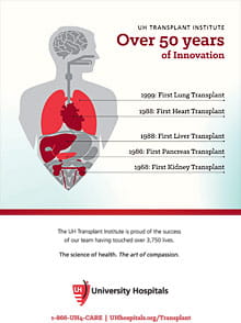 No matter their age or gender, patients at University Hospitals Transplant Institute benefit from decades of research and experience, a highly qualified multidisciplinary team of experts, and carefully coordinated patient care across all specialties.