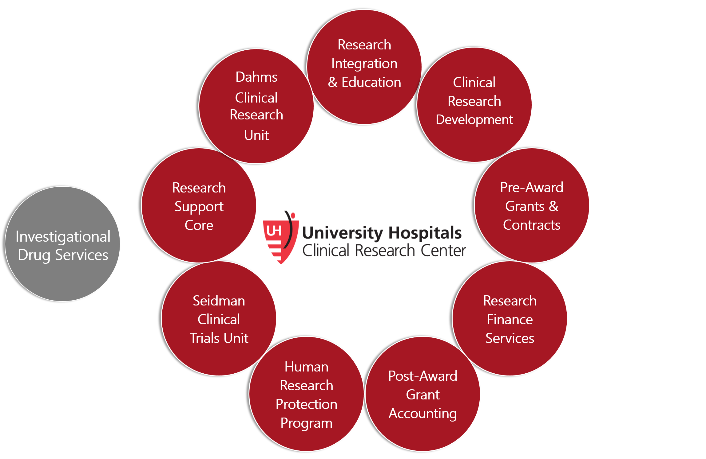 The office also includes Research Integration & Education (RIE) services. Among their services, RIE presents required Clinical Research Orientation, provides UH Investigator Training, and holds consultations for new Principal Investigators. RIE also assists PI's and study teams with developing recruitment & community outreach strategies; standing up new investigative sites; building system wide awareness of research; and integrating best practices into clinical research activities.