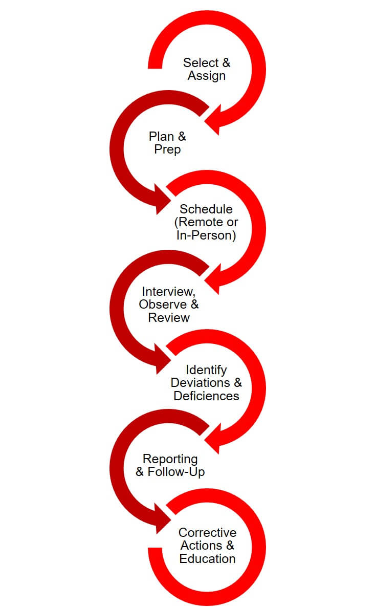 UH Research Compliance will conduct audits or reviews in the form of routine or directed visits at affiliated UH sites, and anywhere the UH IRB serves as the IRB of Record. Research projects are selected by performing a query of the IRB database, reviewing IRB minutes, or may be requested on a voluntary basis by the Principal Investigator, Department, or Clinical Chair.